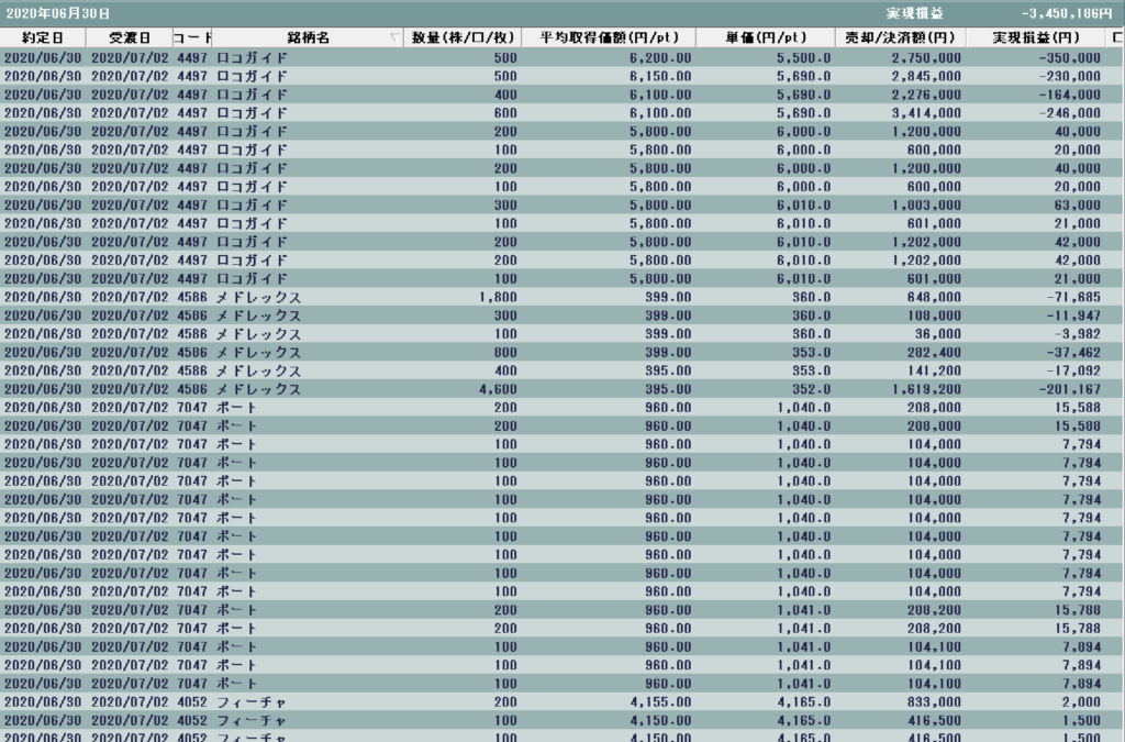 2020年6月30日(火)4497.ロコガイドウリ連に巻き込まれ爆損!